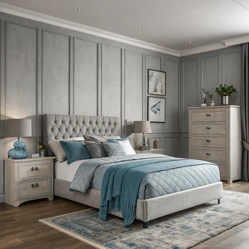 Elegant Grey Bedroom with Blue Accents