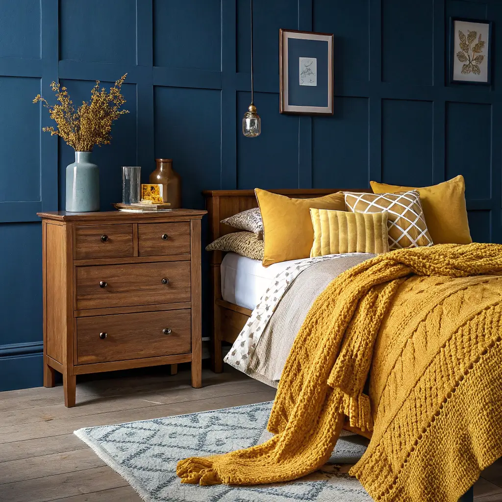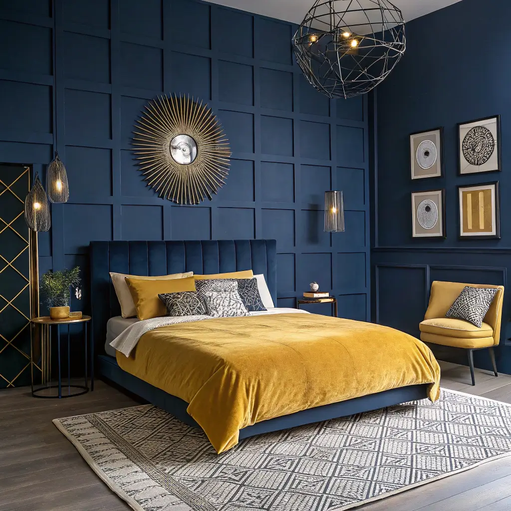 Bold Navy and Mustard Statement Bedroom