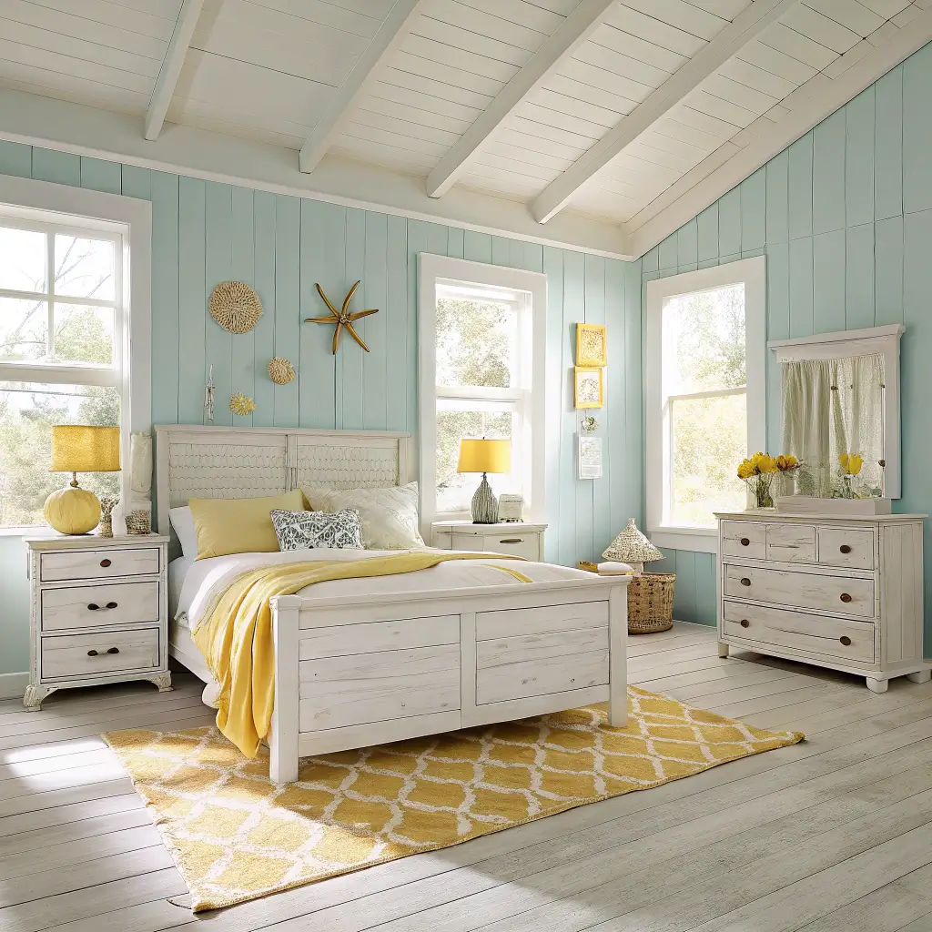 Coastal Blue and Yellow Beach-Inspired Bedroom