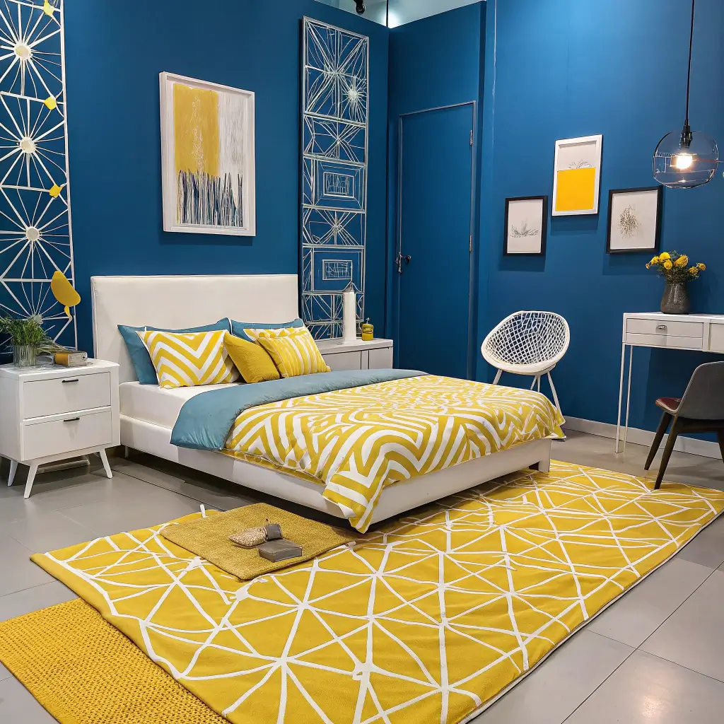 Geometry isn’t just for math class anymore! Geometric patterns in blue and yellow create a modern, artistic vibe that feels both playful and sophisticated. Think hexagon wall decals, chevron throw pillows, or a killer geometric area rug that ties everything together.