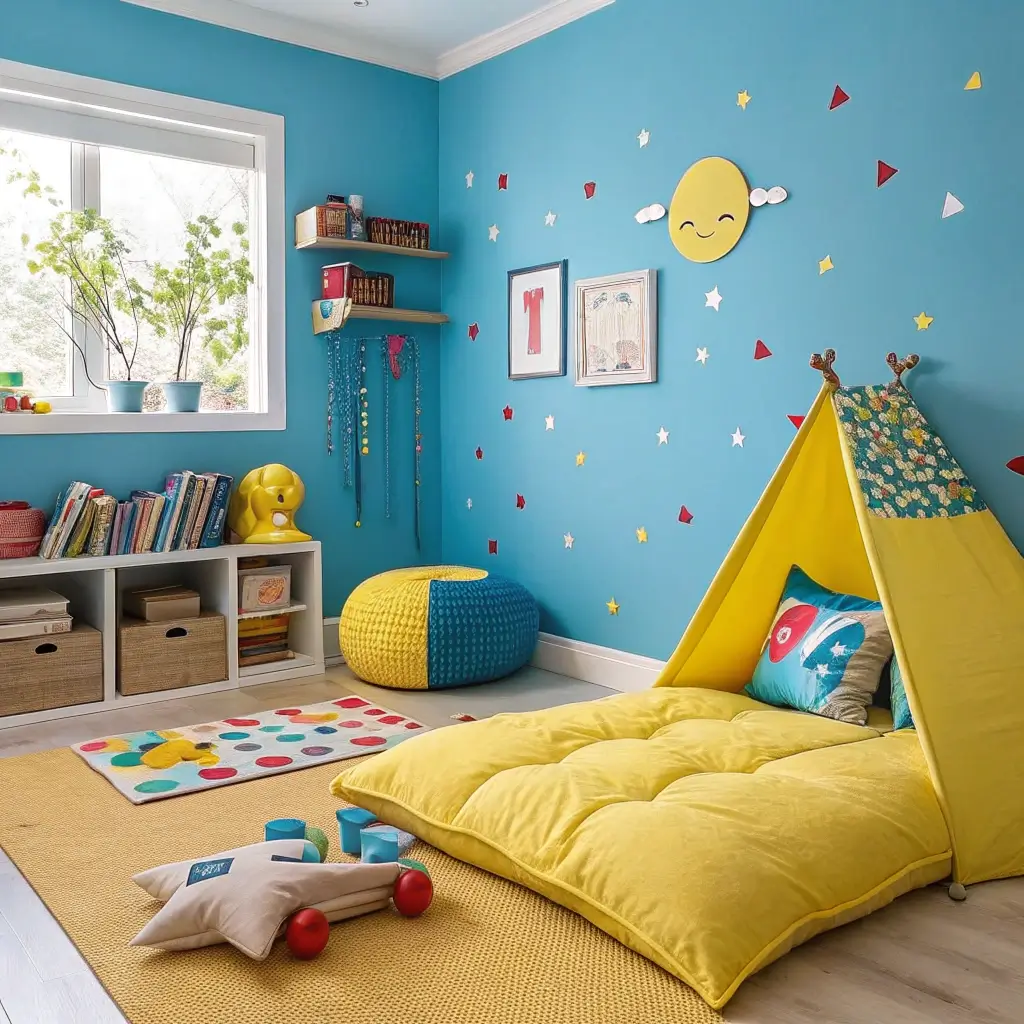 Playful Blue and Yellow Kids’ Bedroom