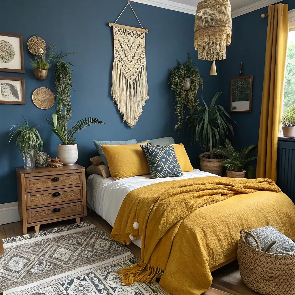 Blue and Yellow Boho Chic Bedroom