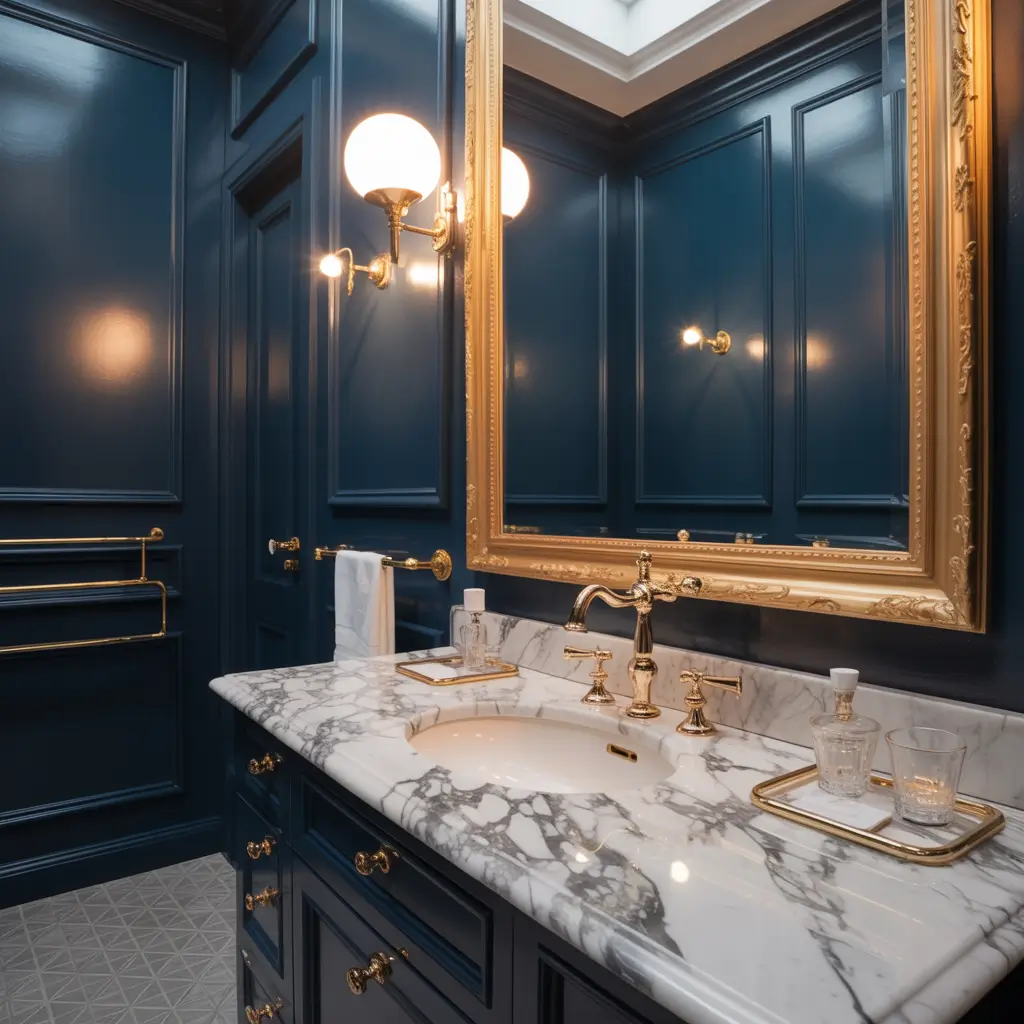 Navy and Gold Bathroom Elegance