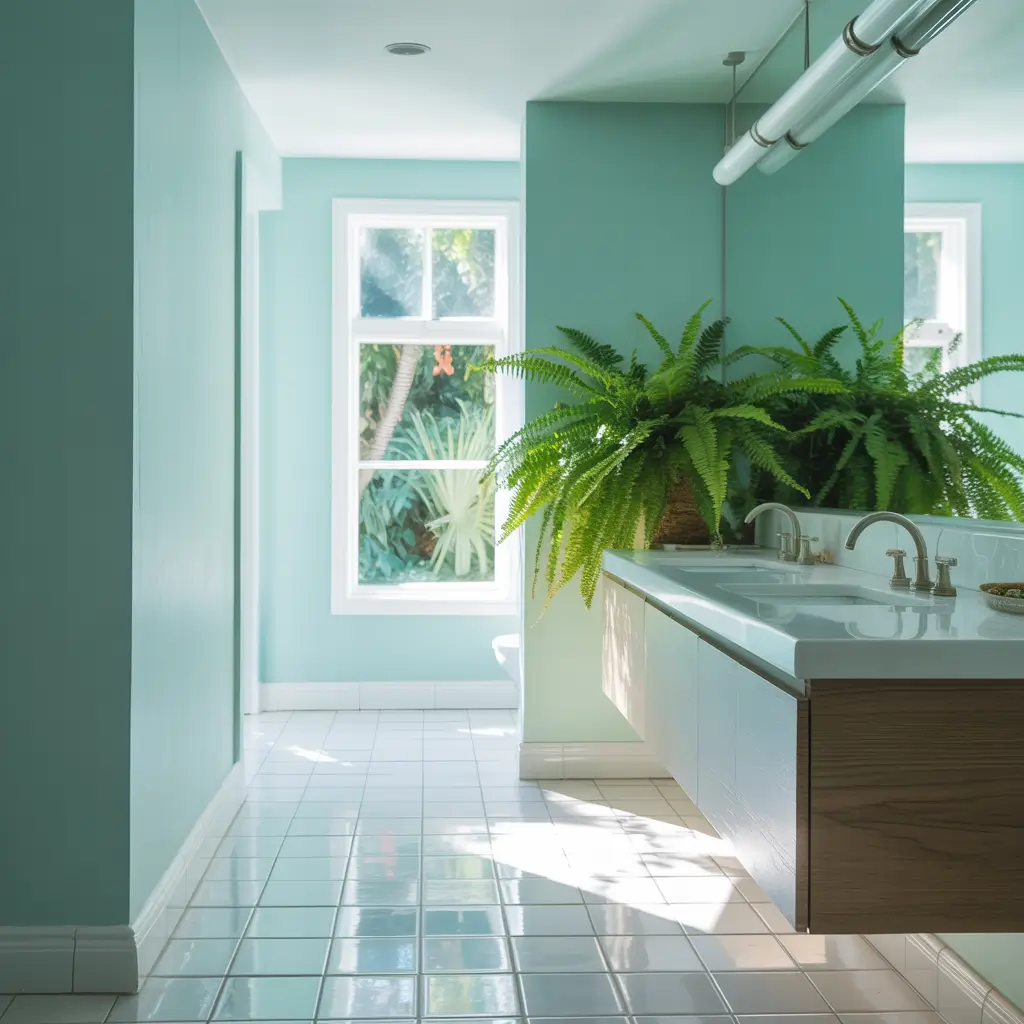 My master bathroom follows this formula: turquoise accent wall, white everything else, bamboo accessories, and enough plants to start a small jungle. Every morning feels like a mini retreat.