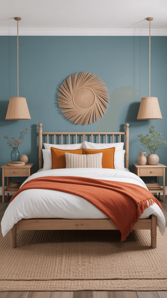 14. Try Blue with Earthy Tones for a Bohemian Style