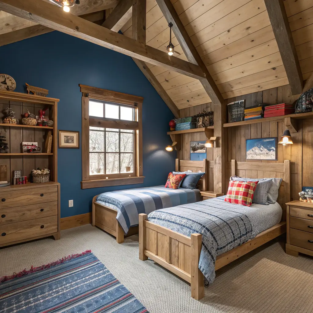 Rustic Wooden Blue Boys Bedroom Design