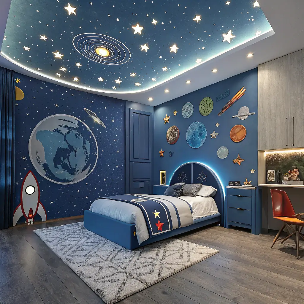 Space-Themed Blue Boys Bedroom