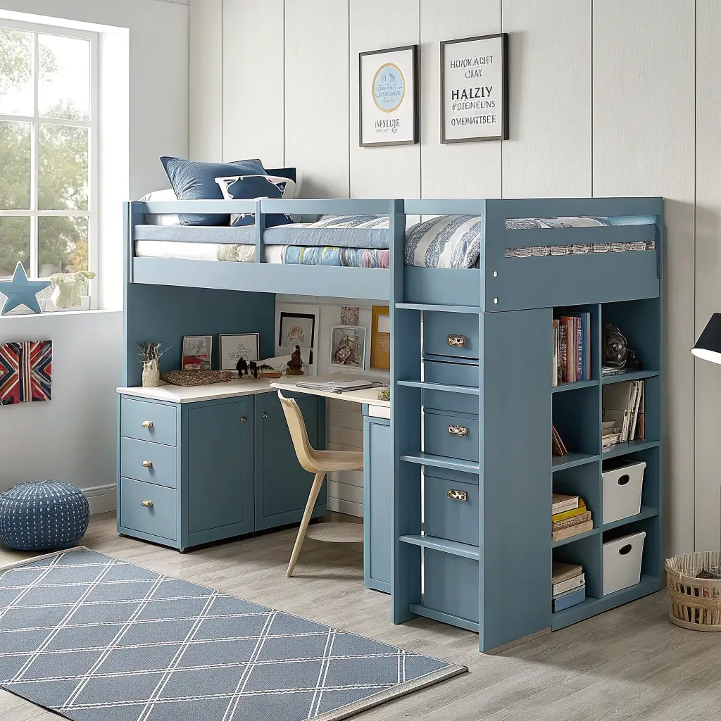 Multi-Functional Blue Boys Bedroom for Small Spaces