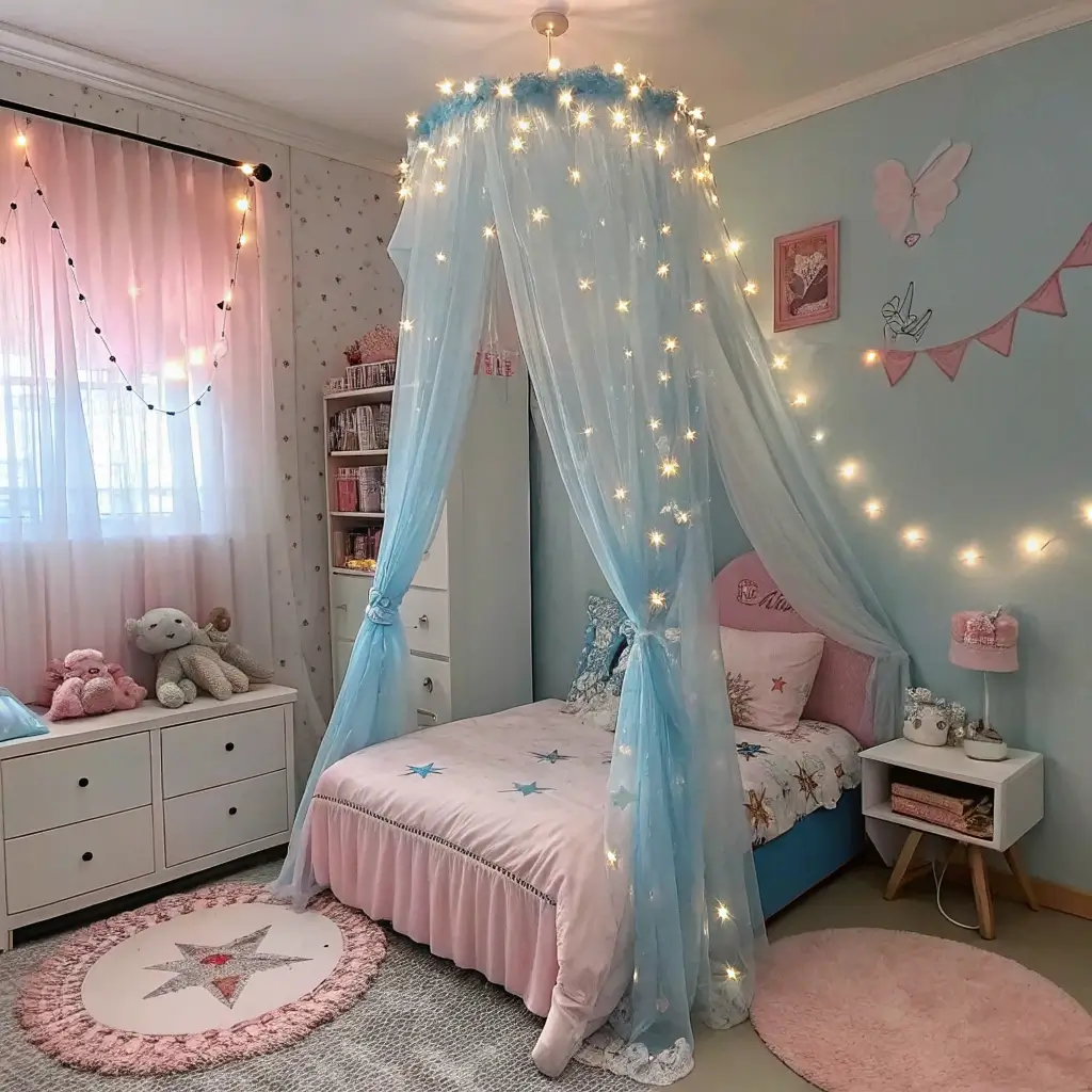 - A canopy bed draped in tulle (trust me, every princess needs one)