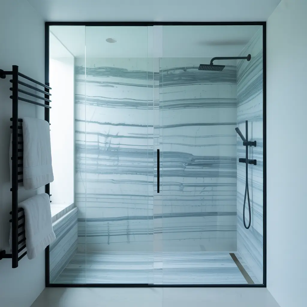 Ever noticed how the best hotel showers make you never want to leave? They master minimalism by using large-format blue marble slabs that eliminate grout lines. Fewer lines equal less visual noise, which equals pure zen. My contractor thought I was crazy when I insisted on book-matching the marble panels in my shower, but that seamless pattern flow? Chef’s kiss.