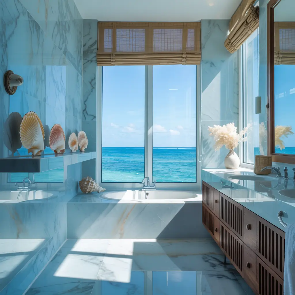 Coastal Blue Marble Bathroom Inspiration