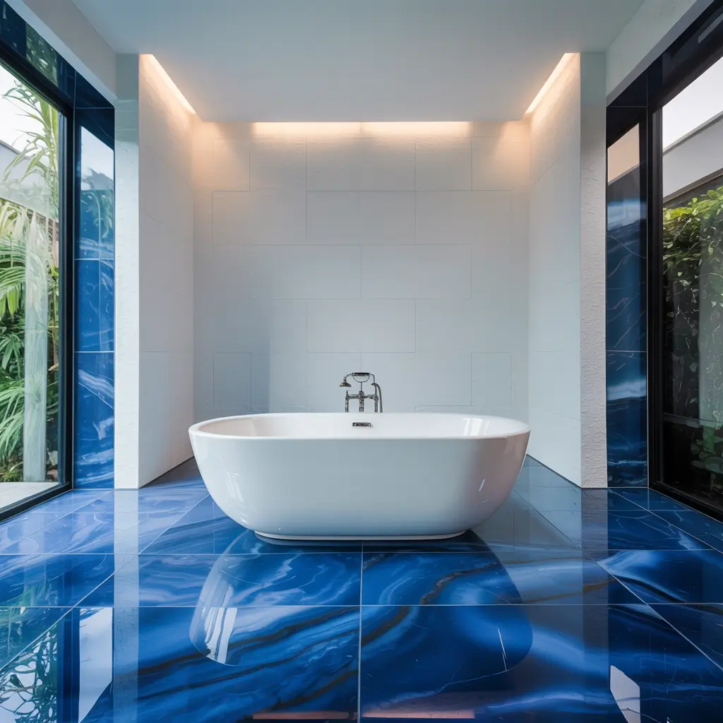 Porcelain tiles that mimic blue marble have come SO far. We’re not talking about those obviously fake patterns from ten years ago. Today’s high-quality porcelain recreates the depth, veining, and color variation of real marble. Plus, they’re more durable and way less maintenance. My neighbor used these in her bathroom, and I literally couldn’t tell they weren’t real marble until she told me.