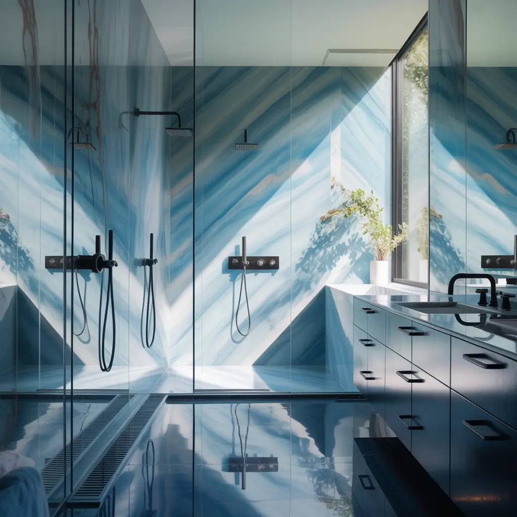 Minimalist Blue Marble Shower Ideas