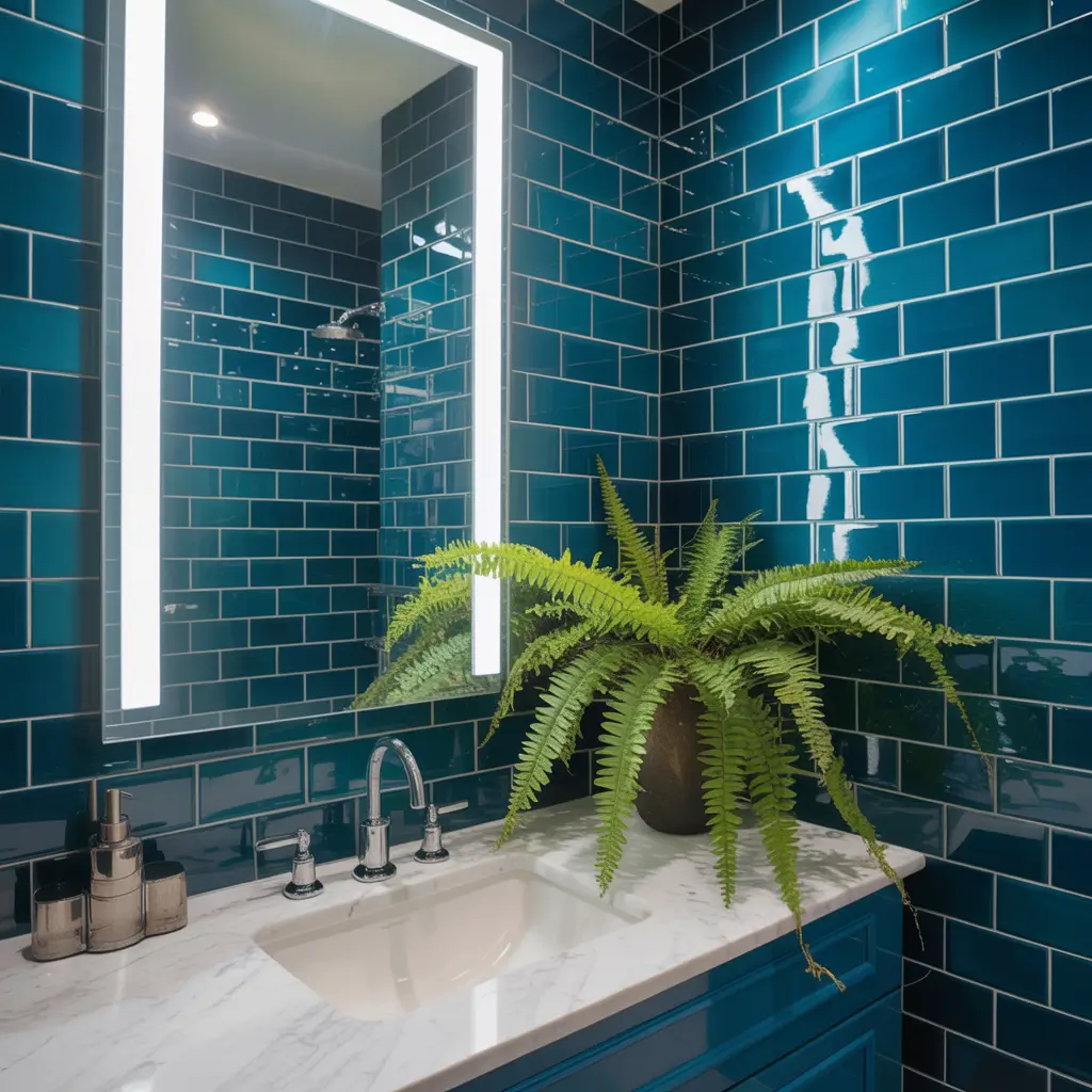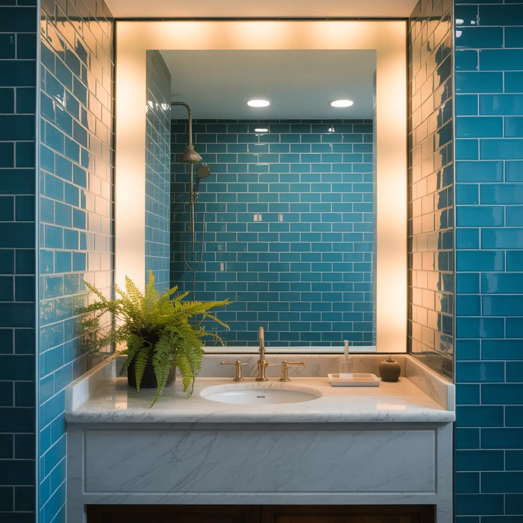 One renovation trick I swear by? Extend your blue tiles onto the ceiling in the shower area. It creates this immersive, cocoon-like feeling that makes every shower feel like a spa experience. Sure, it costs a bit more in materials and labor, but the impact is absolutely worth it.