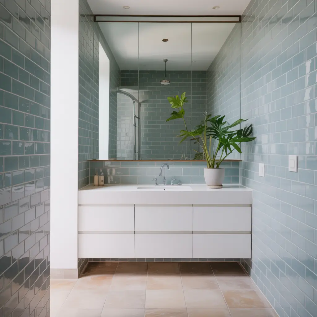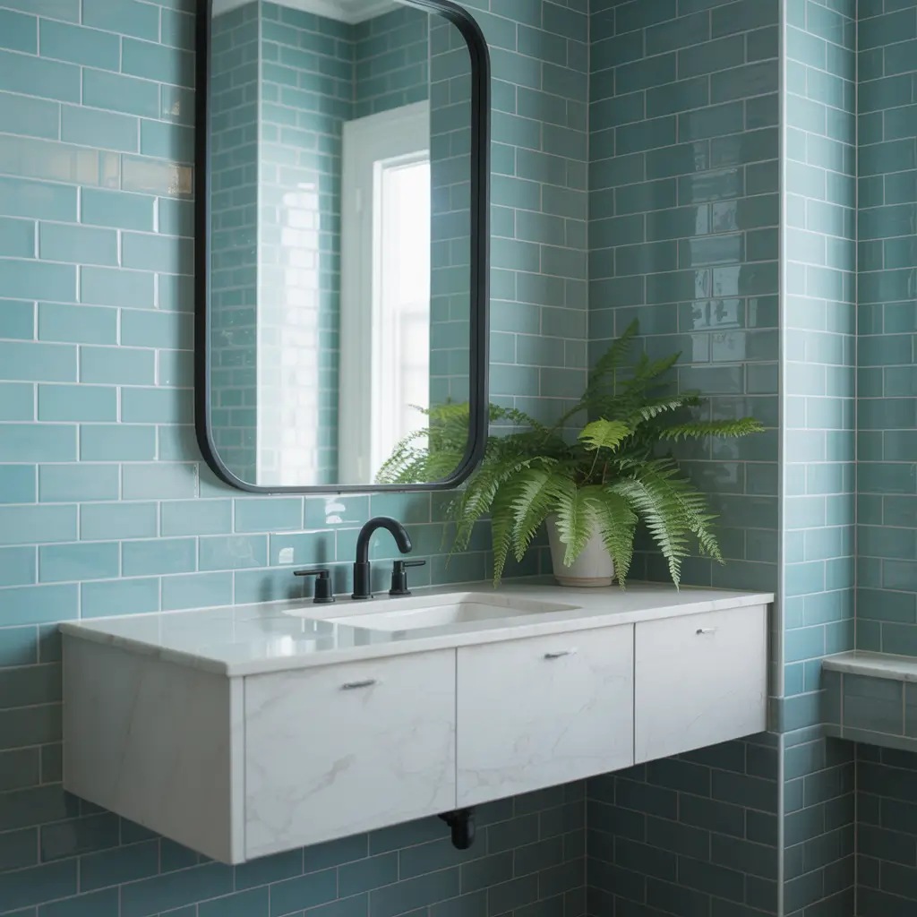 Vertical installations work magic in small spaces. Stack those blue subway tiles vertically instead of horizontally, and watch your ceilings appear to grow three feet. My apartment bathroom is literally 5×7 feet, and vertical pale blue subway tiles made it feel twice as big. Not kidding – every guest comments on how “spacious” it feels. 🙂