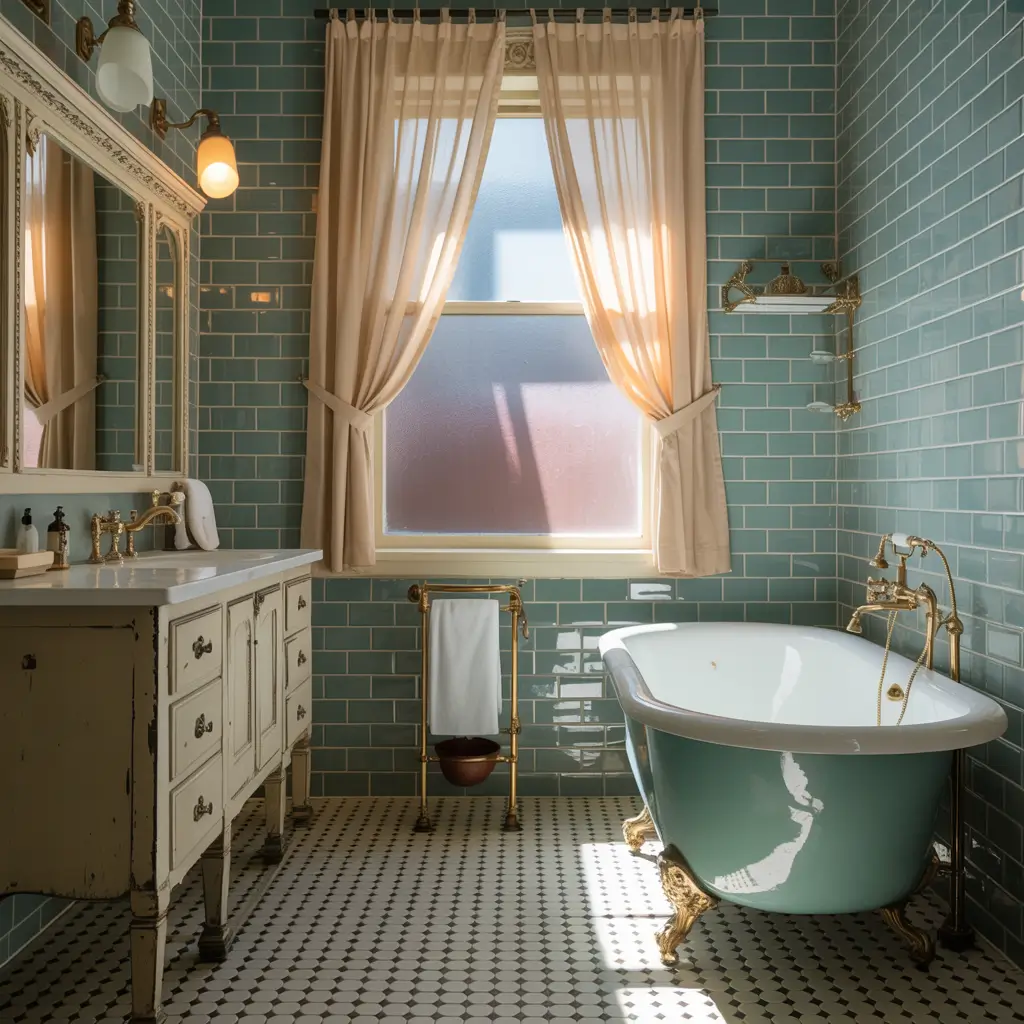 Vintage designs often feature slightly imperfect tiles – maybe with crackled glazes or subtle color variations that add character. Pair these with classic fixtures like pedestal sinks, clawfoot tubs, and those amazing Victorian-style faucets, and you’ve got a bathroom that tells a story.