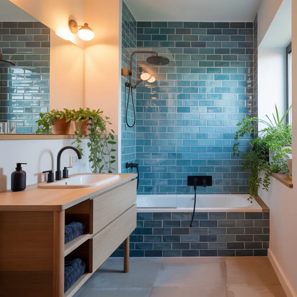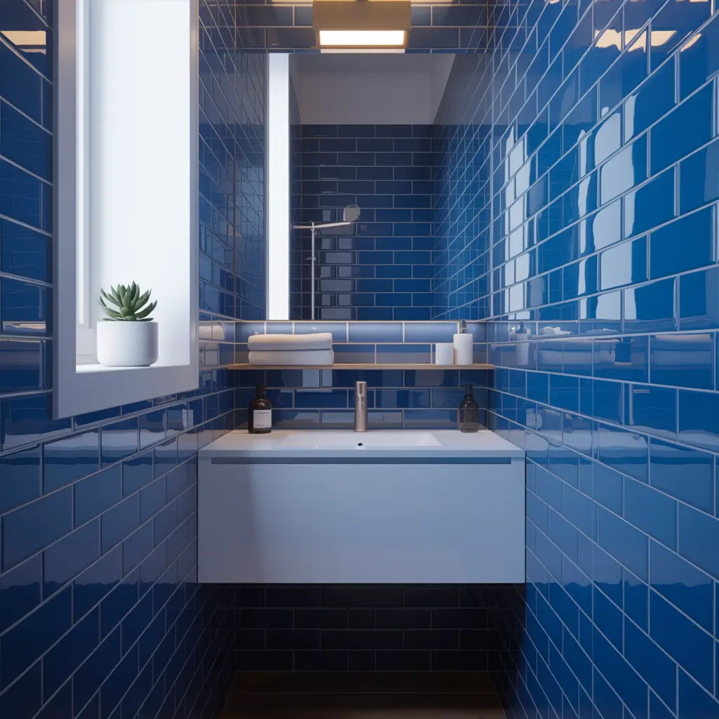 Consider mixing tile sizes – standard subway tiles on walls with larger format blue tiles on floors. Or create zones using different blue shades: darker blues in the shower area, lighter blues around the vanity. These thoughtful design choices elevate a basic renovation into something magazine-worthy.