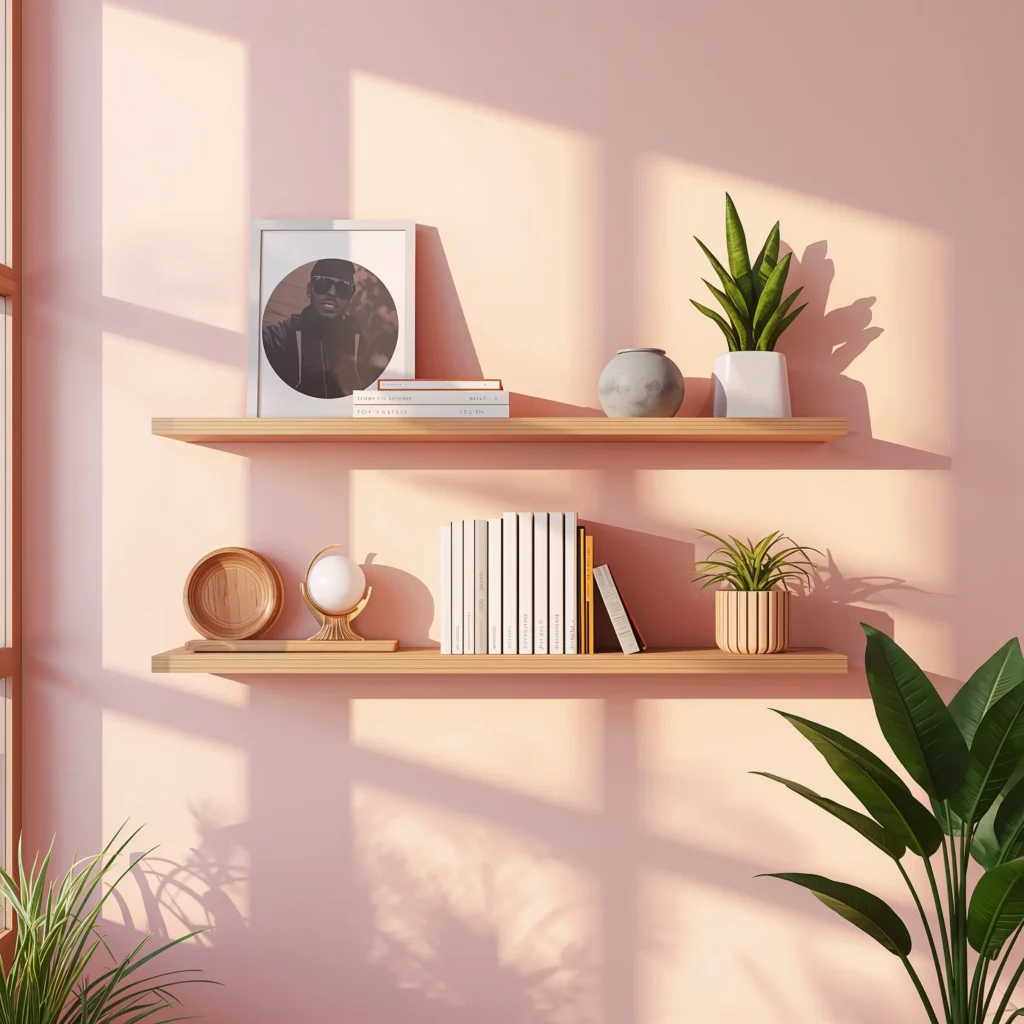 The beauty of floating shelves? Complete customization. You decide the height, spacing, and configuration. Want a single dramatic shelf? Go for it. Prefer a geometric pattern? Why not? I’ve seen people create entire wall murals using floating shelves, and the effect is stunning.