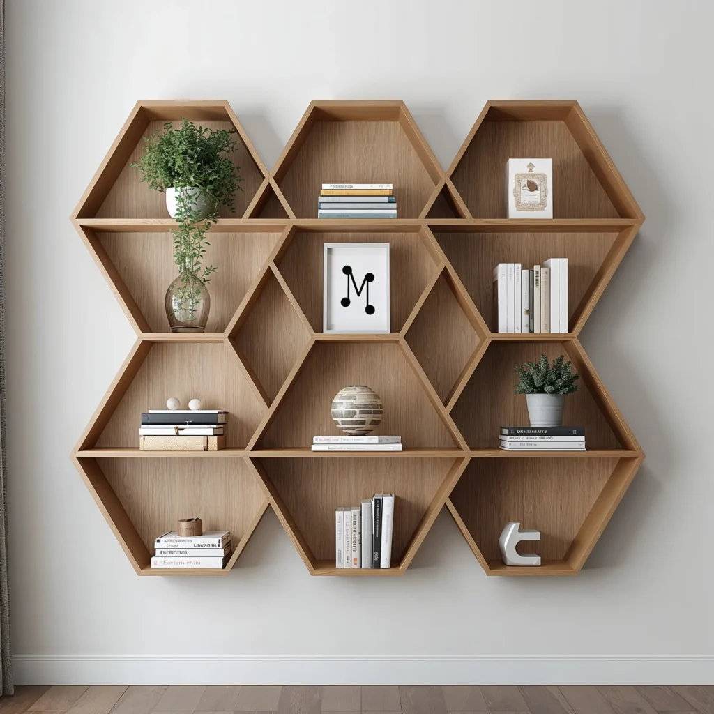 Wall-mounted bookshelves turn your entire wall into a canvas. Forget single floating shelves – I’m talking about geometric designs, asymmetrical arrangements, and creative configurations that make people stop and stare.