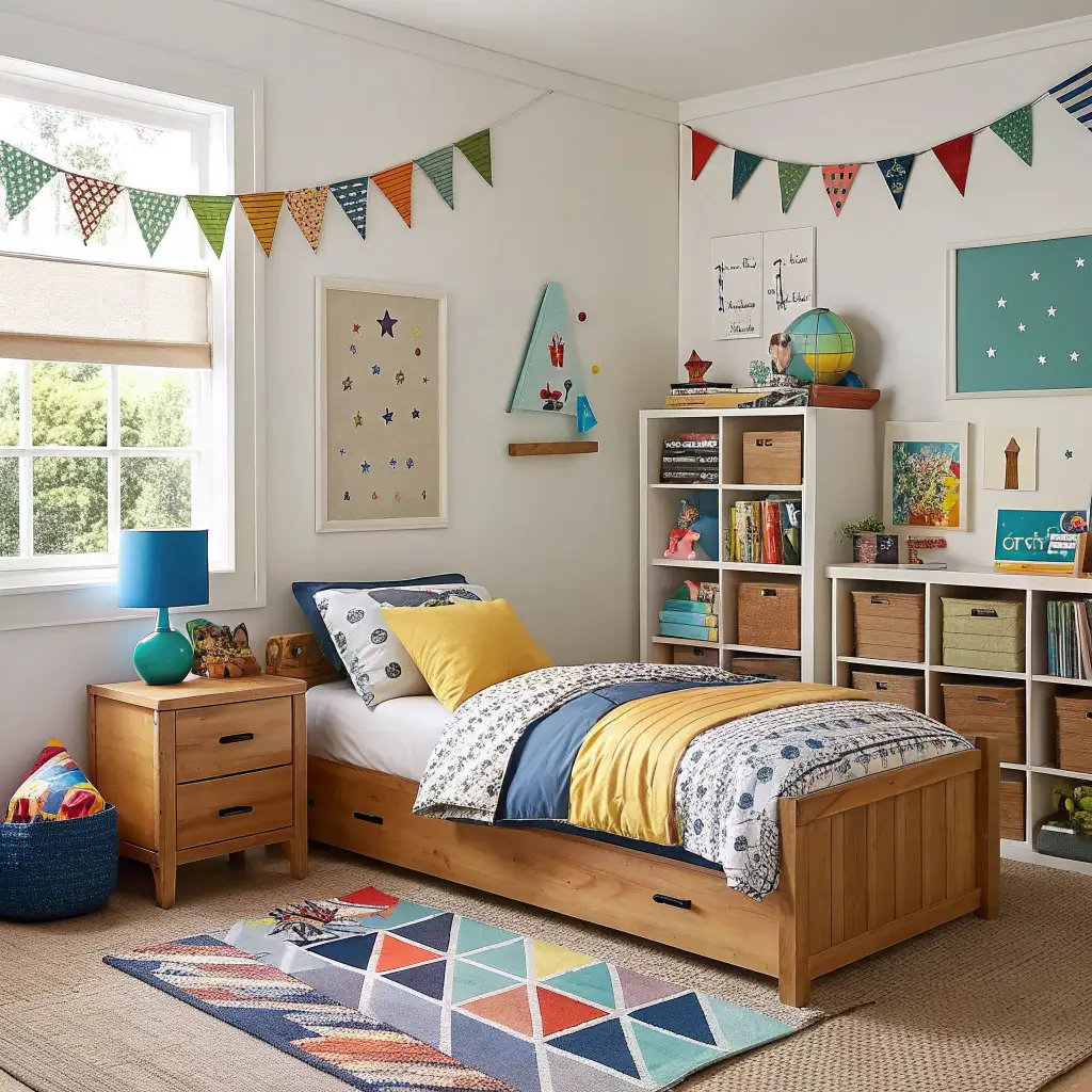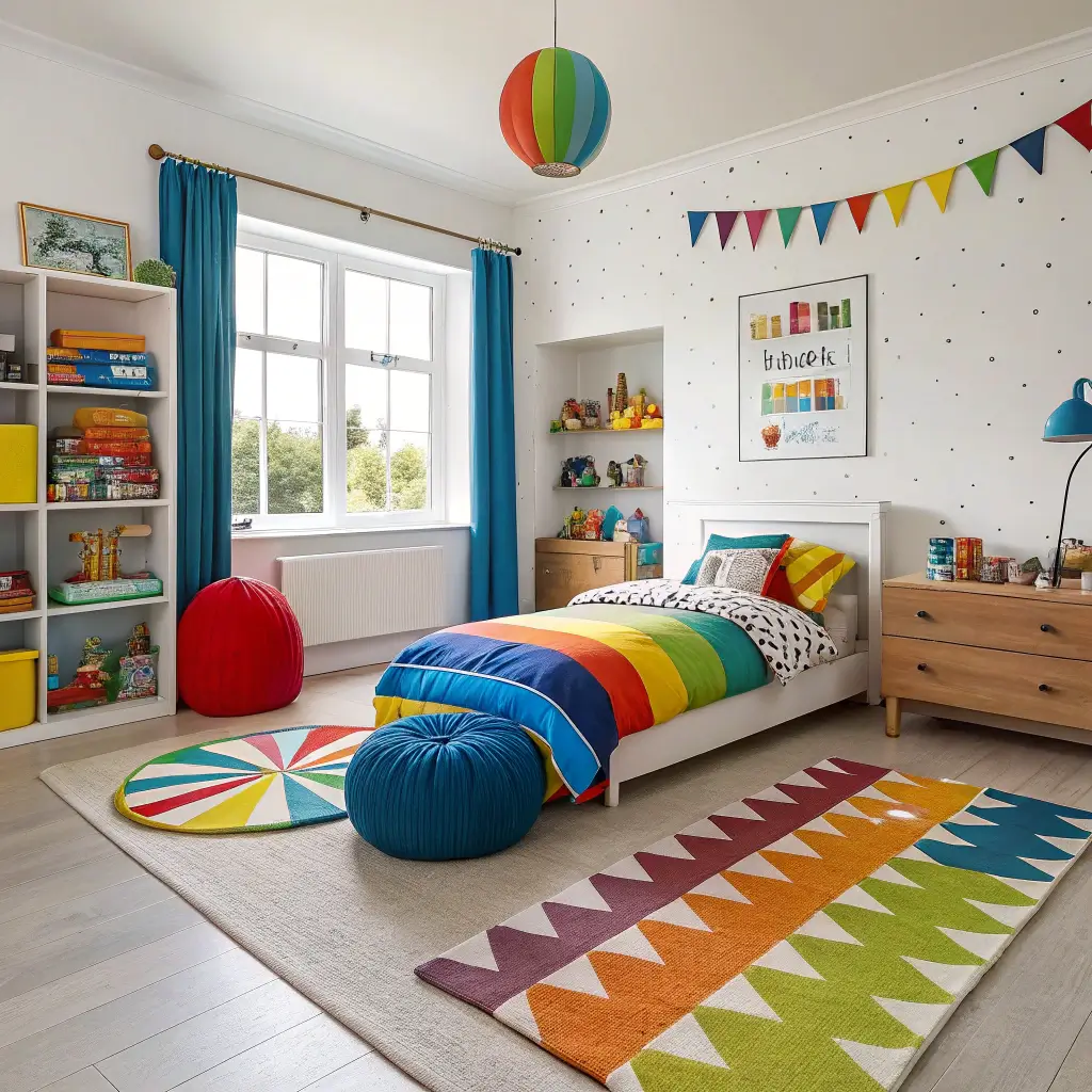 Who decided boys only like blue and green? Some kids want ALL the colors, and honestly, why not embrace it? A colorful room stimulates creativity and makes the space feel uniquely theirs.