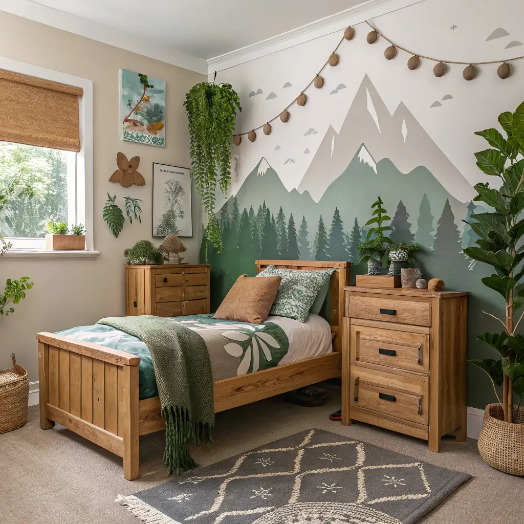 Bringing the outdoors in creates a calming environment that’s perfect for kids who love animals, camping, or just being outside. Think forest, ocean, or mountain themes without going full jungle.