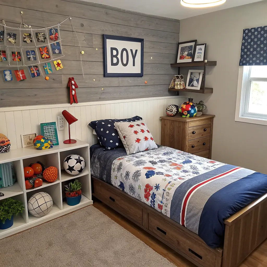 Small room? No problem. Minimalist design actually works better for active boys because there’s less stuff to knock over during impromptu wrestling matches. Focus on multi-functional furniture that grows with them.