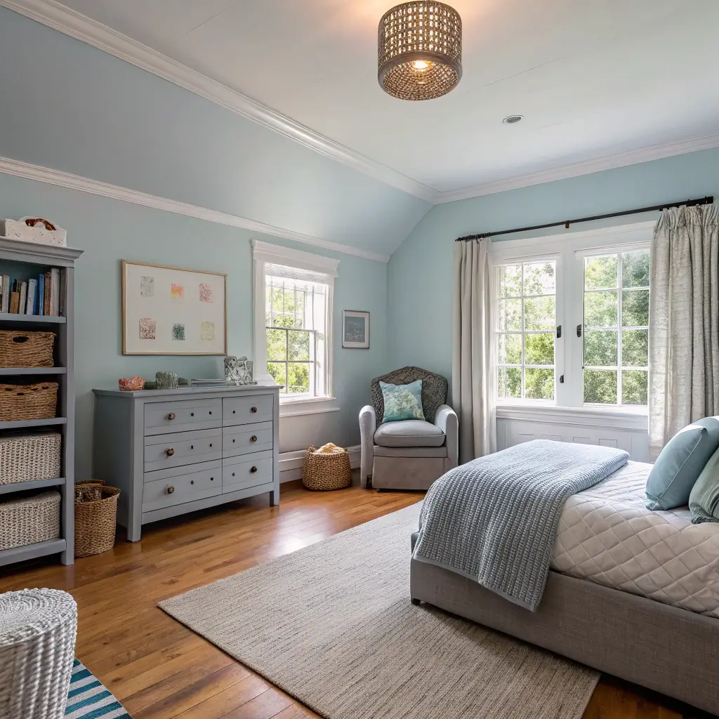 The beauty of blue and gray lies in its versatility. You can go with a soft powder blue paired with charcoal gray for a sophisticated look that’ll grow with your kid. Or try a deeper navy with light gray accents if you want something more dramatic. The trick is balancing the two colors so neither overwhelms the space.