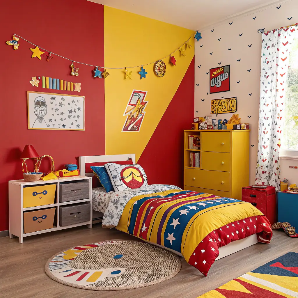 Now, if your boy has energy levels that rival a caffeinated squirrel, red and yellow might be right up his alley. Fair warning though – these colors pack a punch, so you’ll want to use them strategically unless you want a room that screams louder than your kid on Saturday morning.