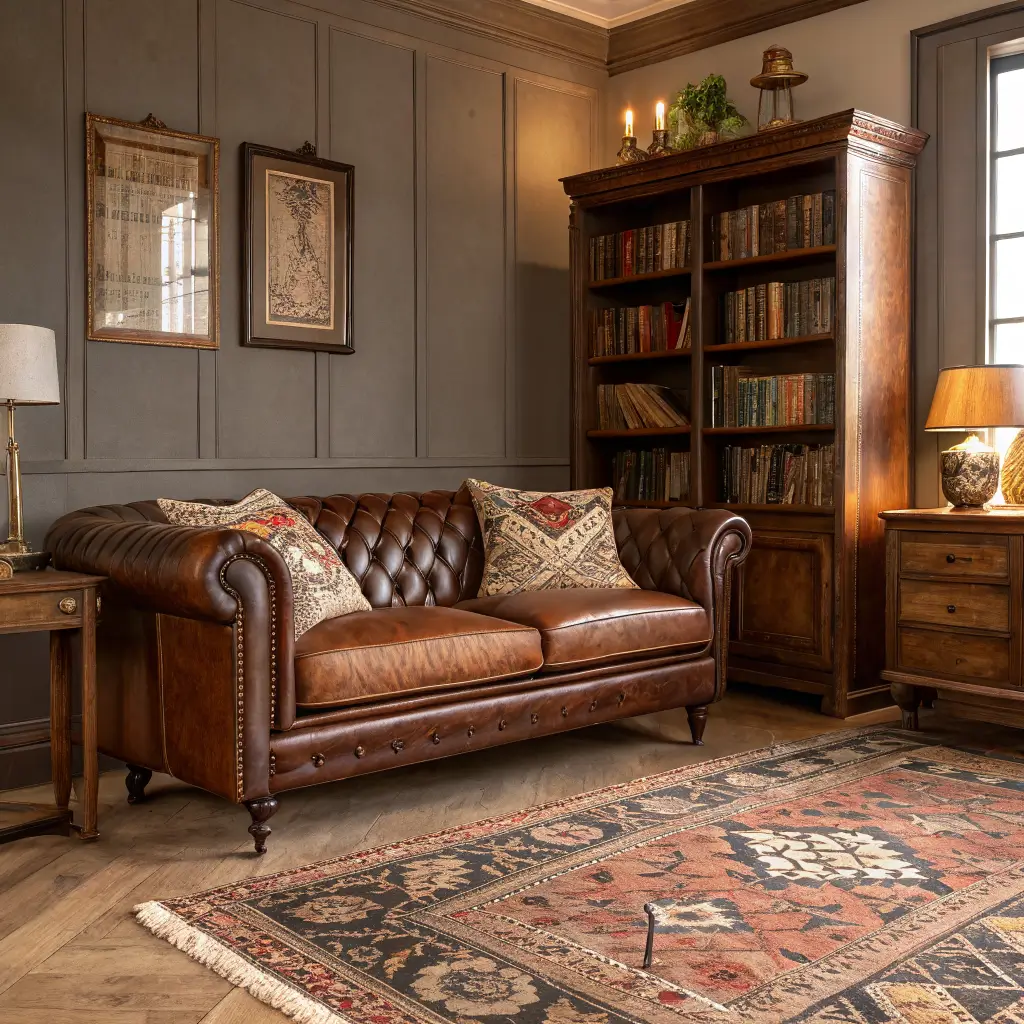 Add warmth with Edison bulb lighting and maybe a vintage leather pouf or two. Industrial doesn’t mean cold – throw in some soft textiles in rich textures like velvet or wool. A cognac-colored leather accent chair next to your black couch? That’s the kind of contrast that makes people stop and stare 🙂