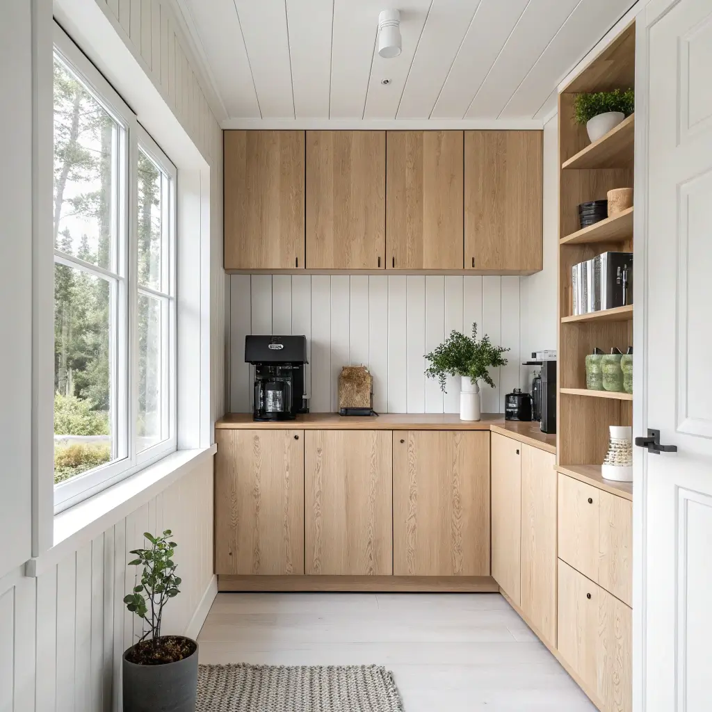 The accessories stay minimal too. Maybe a simple white ceramic pour-over setup, a sleek kettle, and a few carefully chosen mugs. No clutter, no chaos—just peaceful coffee preparation in a space that feels like a Swedish café.