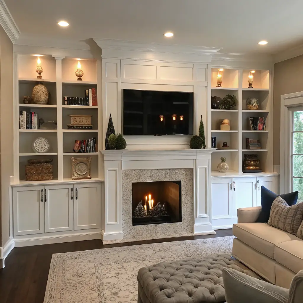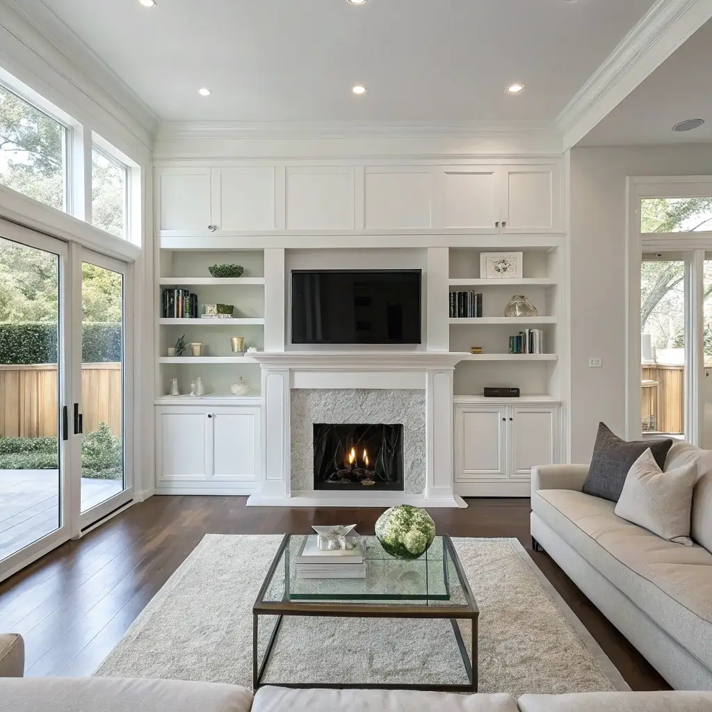 Symmetrical Built-In Cabinets Around Fireplace