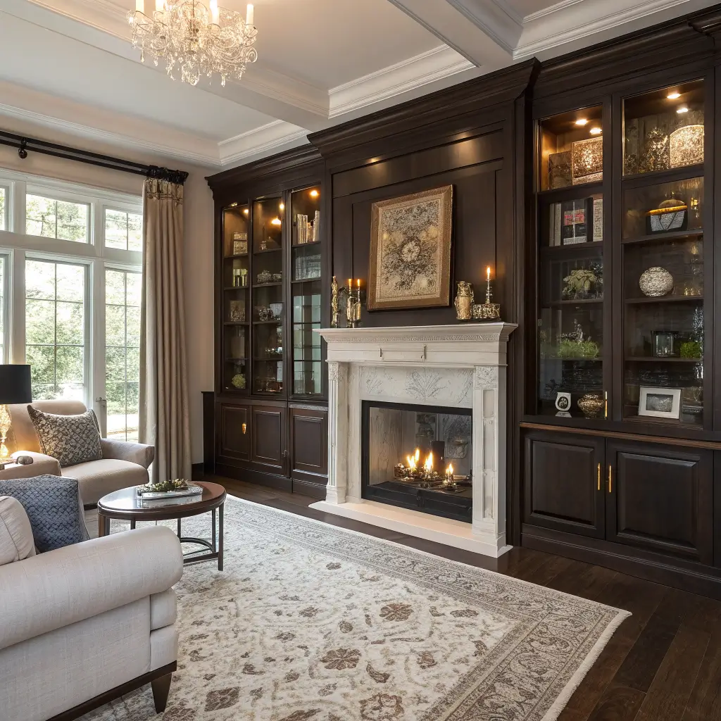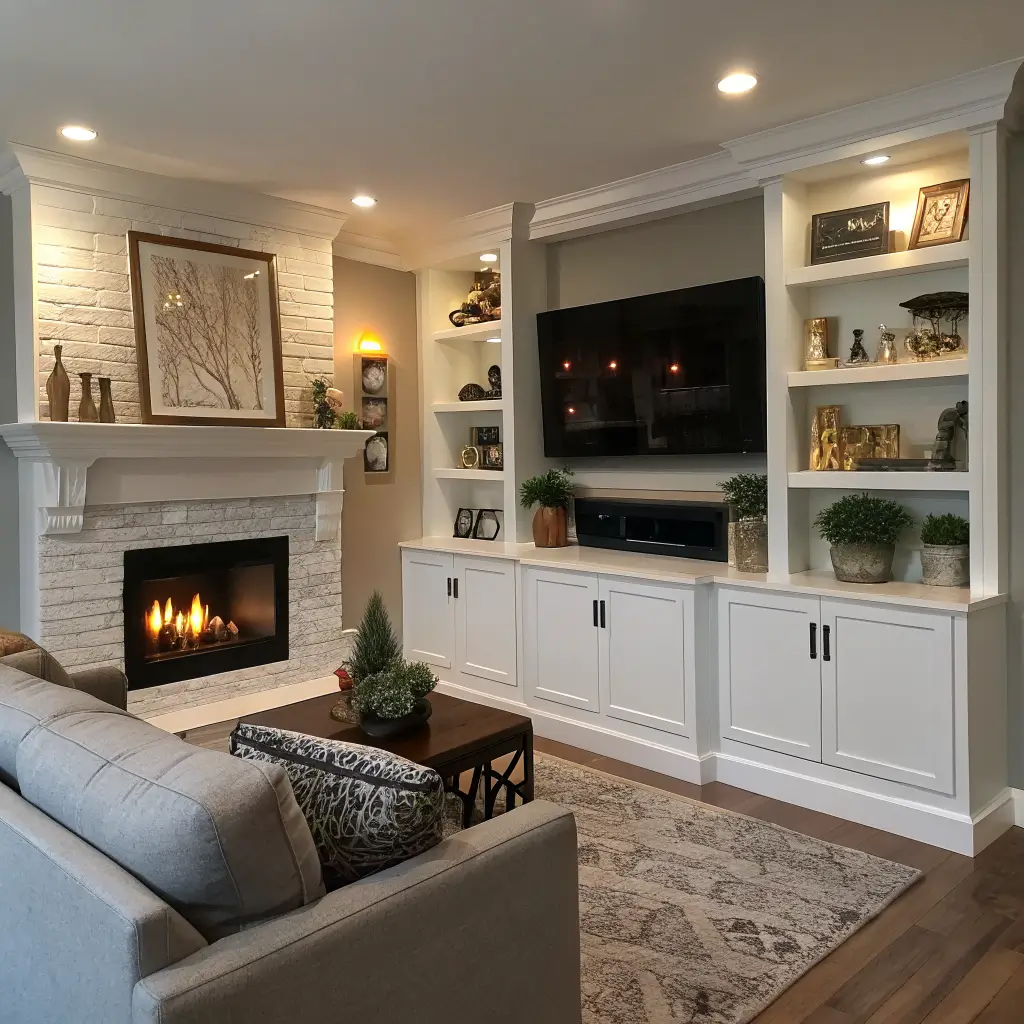 Ever walk into someone’s living room and think, “Damn, they’ve got their life together”? That’s the power of symmetrical built-in cabinets. They scream sophistication while secretly hiding all your clutter – it’s basically the mullet of storage solutions (business in the front, party in the back).
