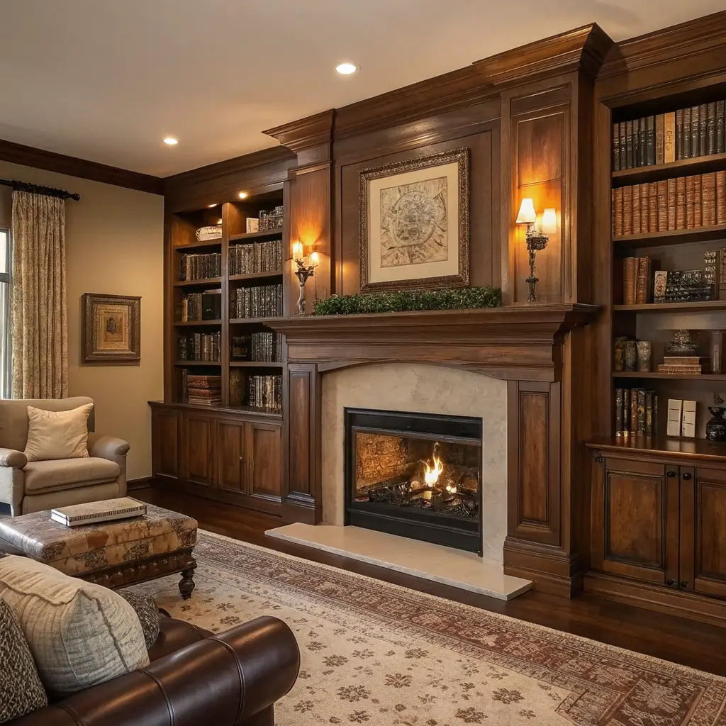 Vintage-Inspired Built-In Bookcase Fireplace