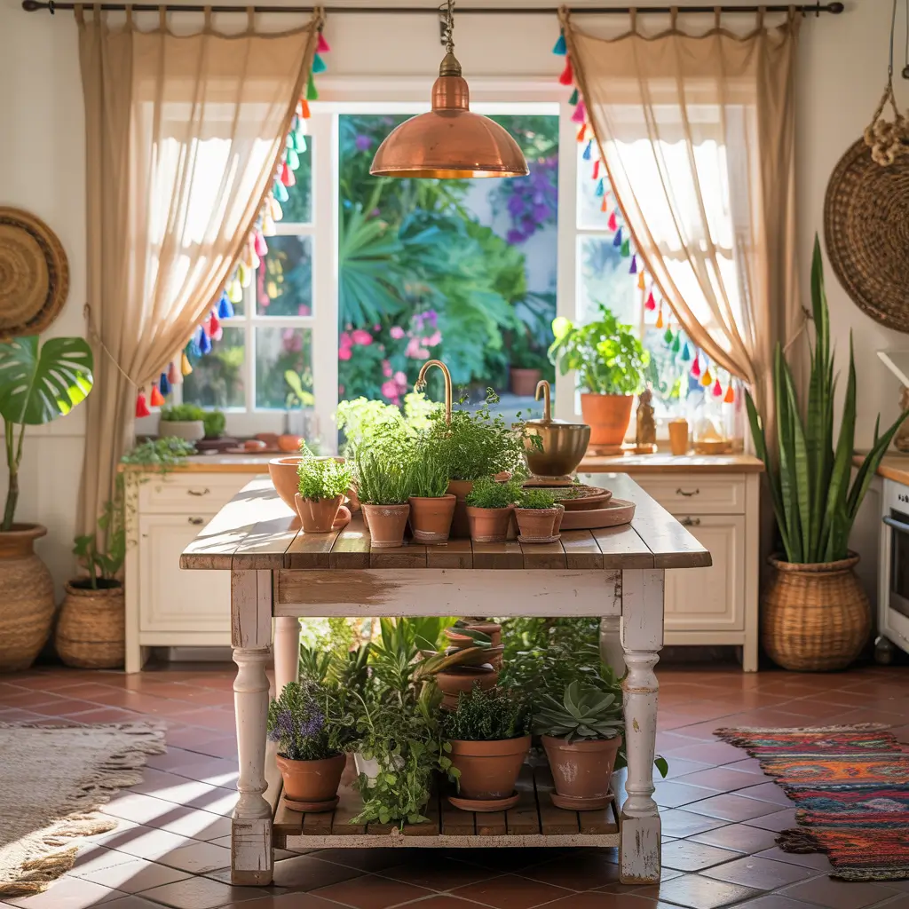 I added bright orange curtains with cream tassels to my breakfast nook, and suddenly it became everyone’s favorite spot. The key is balancing the boho elements – if your curtains are wild, keep the rest of the decor simple.