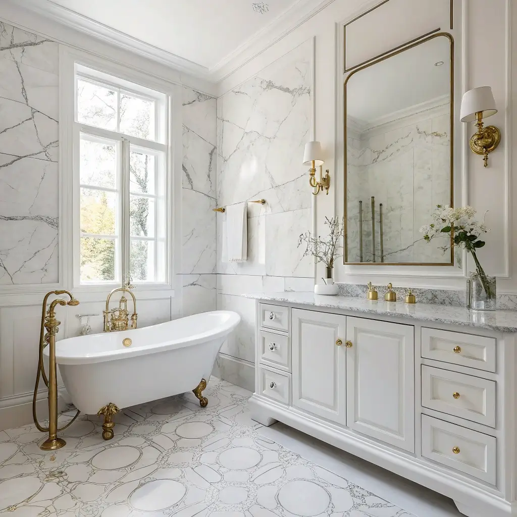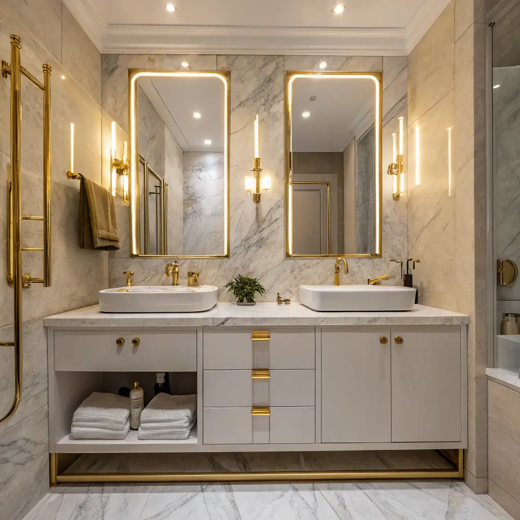 But here’s where people mess up – they go overboard with the gold. You want accents, not a Midas touch situation. Think faucets, mirror frames, and maybe cabinet hardware. The marble should still be the star; gold just plays the supporting role.