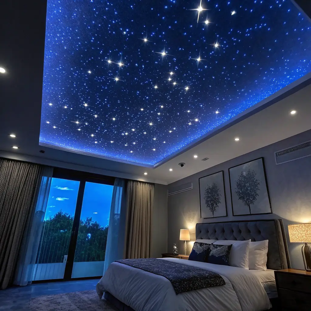 Ever wanted to sleep under the stars without the bugs? Star ceiling installations bring the cosmos indoors with fiber optics or LED technology.
