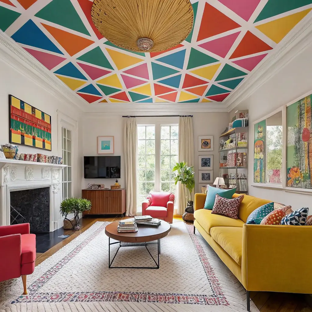 Who says ceilings have to be boring? A pop art ceiling transforms your living room into an instant conversation starter.