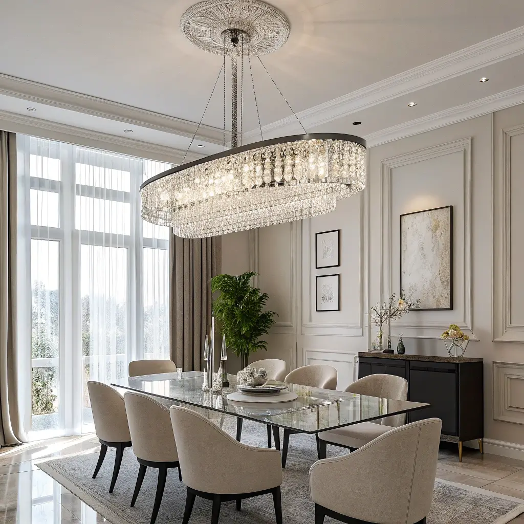 I installed a rectangular crystal chandelier in my dining room last year, and the transformation was insane. The way light bounces off those crystals during dinner? Chef’s kiss. Modern crystal designs often feature: