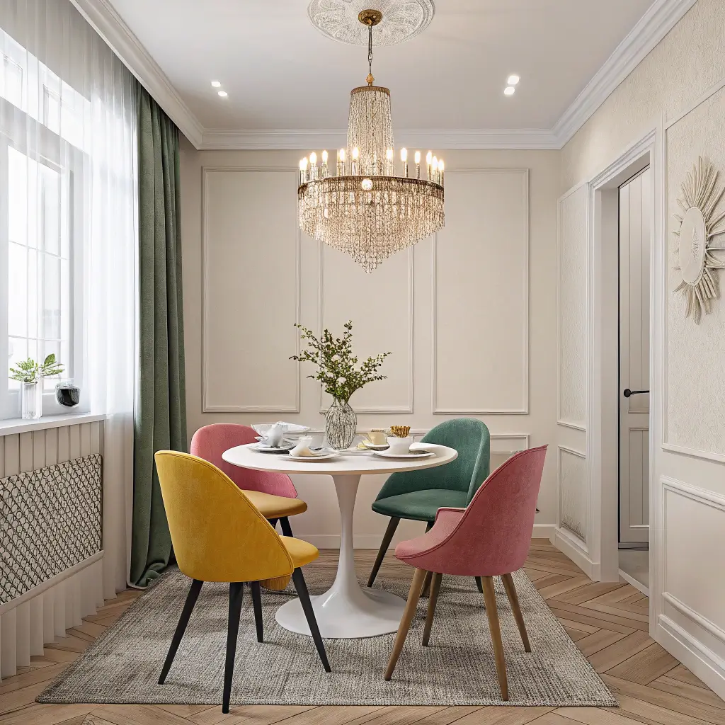 My first apartment had a dining “area” (being generous here), but a well-chosen mini chandelier made it feel intentional rather than cramped. The secret? Go vertical, not horizontal.
