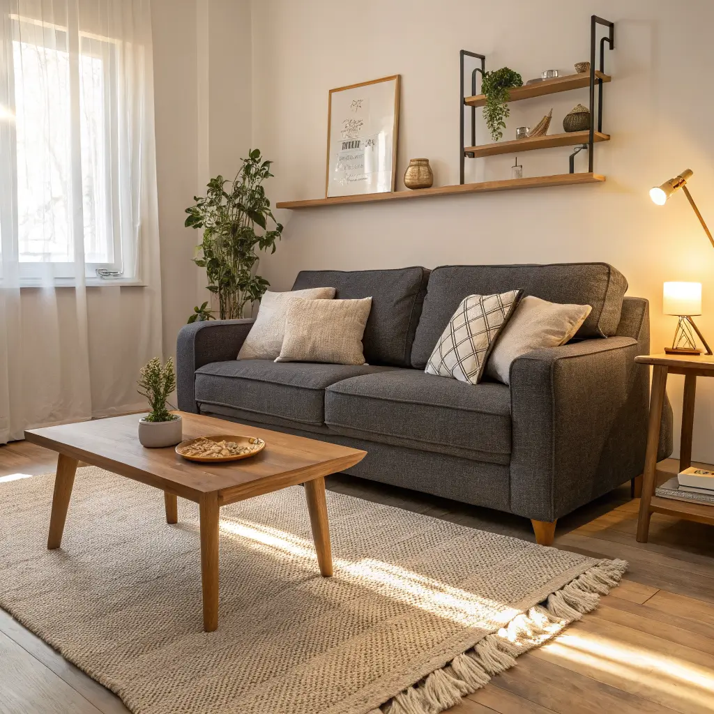 Mount a large mirror opposite or adjacent to your charcoal couch. Not only does it double your visual space, but it also bounces light around, preventing that dark couch from eating up all the brightness in your tiny kingdom. I’ve got a massive vintage mirror I scored at a yard sale, and visitors always think my living room is twice its actual size.