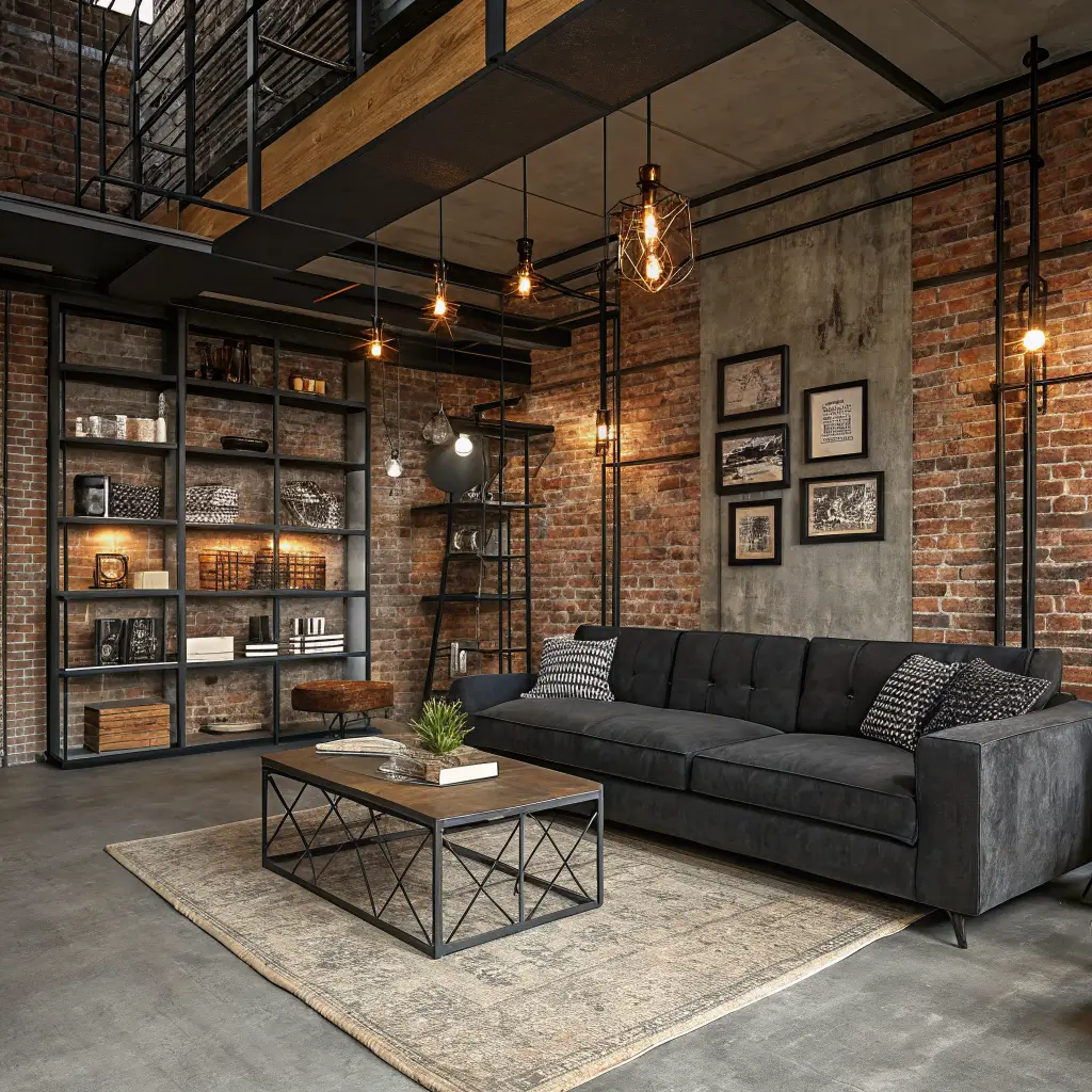 The trick with industrial style? You need to soften those hard edges or risk living in what feels like an abandoned warehouse. Your charcoal couch already provides comfort, but add some chunky knit throws, a sheepskin rug, or even some oversized floor cushions. The contrast between hard industrial elements and soft textiles creates that perfect lived-in loft vibe.
