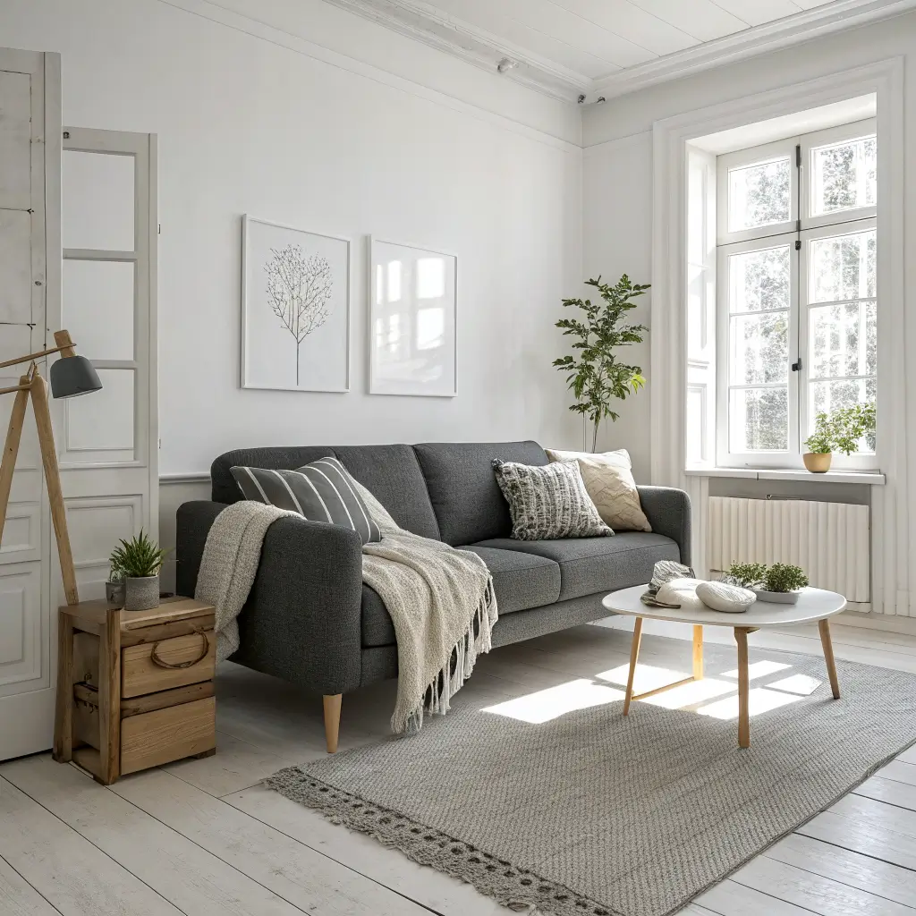 Scandinavian design usually conjures images of white sofas and blonde wood, but a charcoal couch adds that perfect hygge factor that makes Scandi style so cozy. This combination feels fresh and modern while still being incredibly livable.