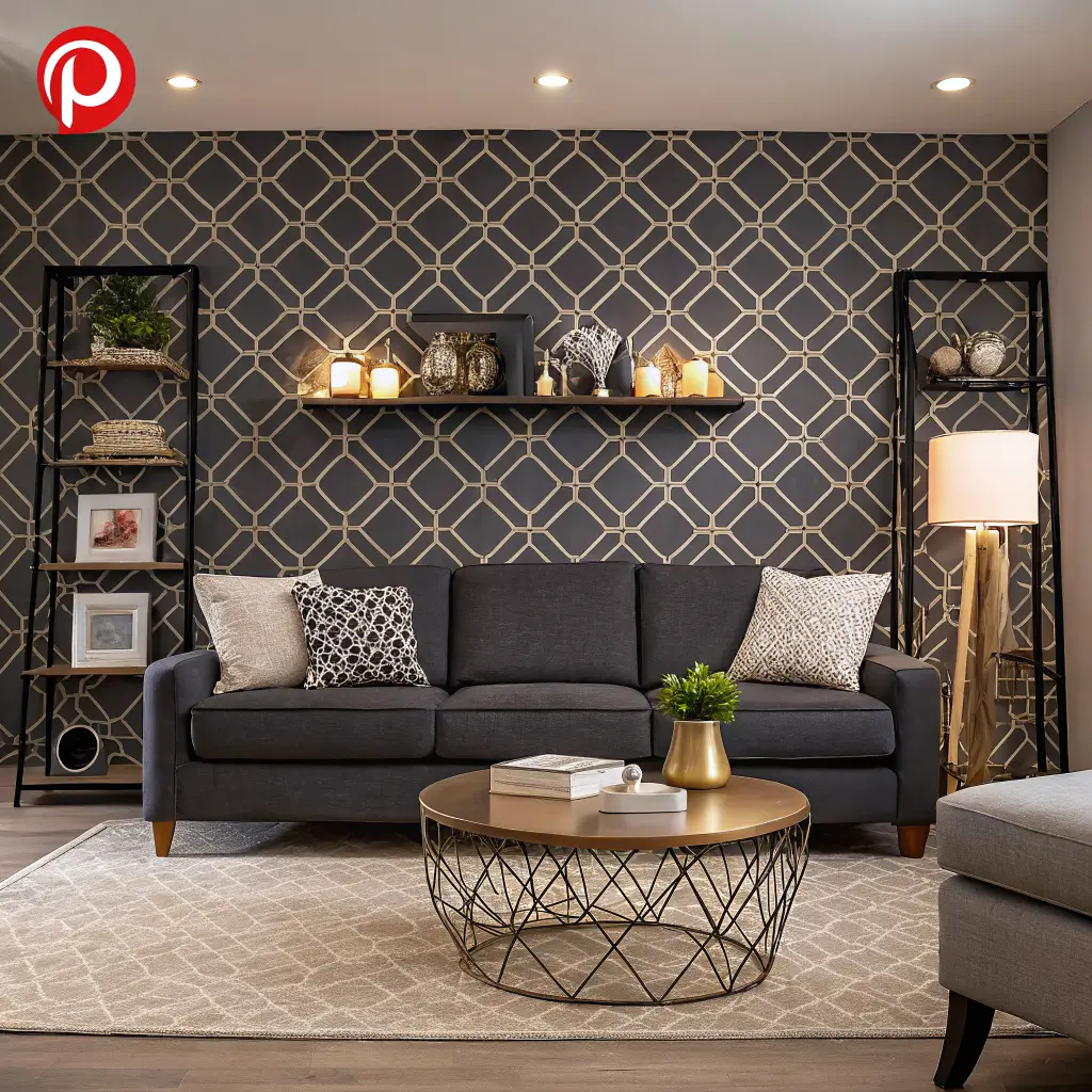 Your charcoal couch deserves an equally impressive backdrop. A statement wall transforms your couch from furniture to focal point. And no, I’m not just talking about basic accent paint (though that works too).