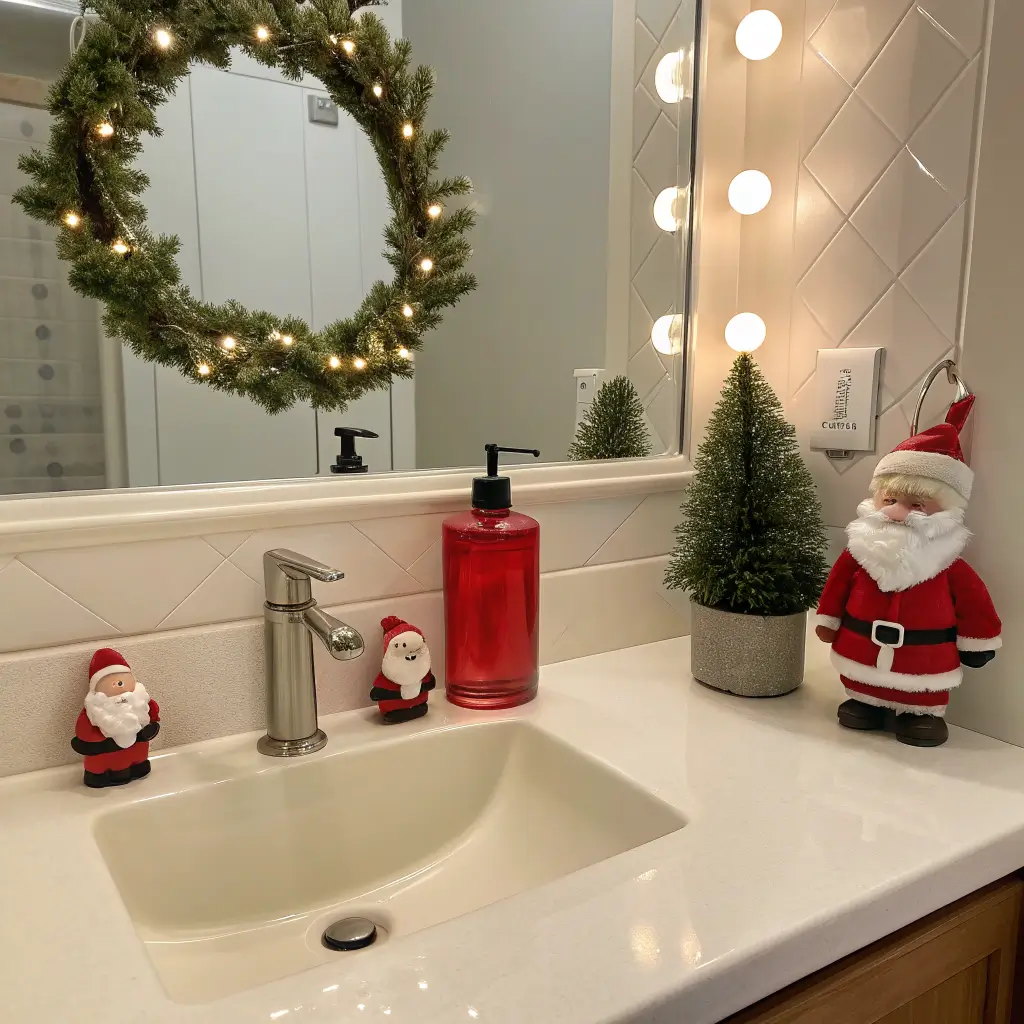 Here’s what nobody tells you about bathroom Christmas trees: skip the real ones. Moisture and pine needles don’t mix well with bathroom surfaces. Learned that the hard way when I spent December constantly sweeping up needles from around the toilet. Not festive, just annoying.