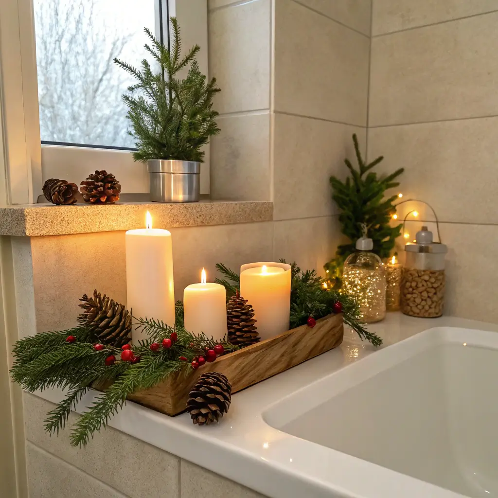 My secret weapon? Timer-enabled LED candles. Set them to turn on automatically each evening, and your bathroom glows festively without you lifting a finger. Lazy decorating at its finest, and nobody needs to know how little effort you actually put in.