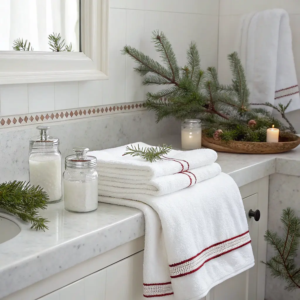 Want your bathroom to feel like a five-star hotel during the holidays? This combination screams luxury without requiring an actual renovation.