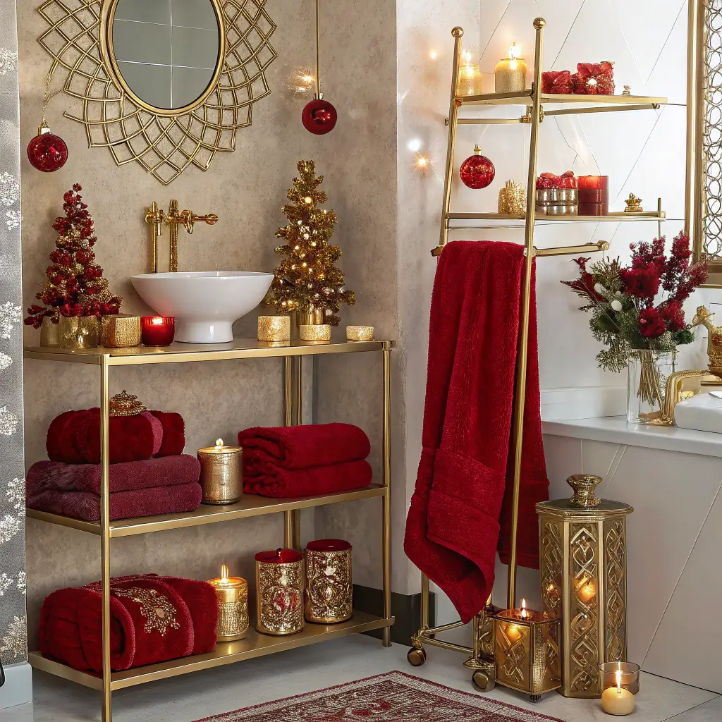 Red & Gold Luxe Christmas Bathroom