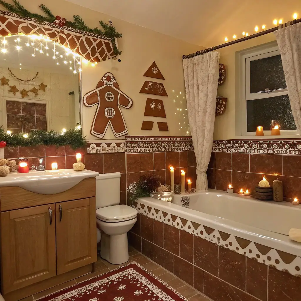 This might sound weird at first, but hear me out. A gingerbread theme brings warmth and whimsy that actually works beautifully in bathrooms.