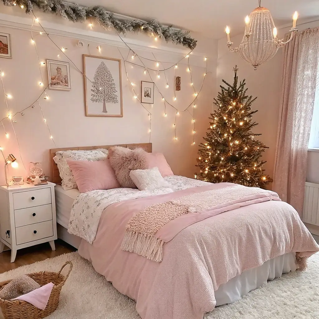 Romantic Blush Christmas Bedroom