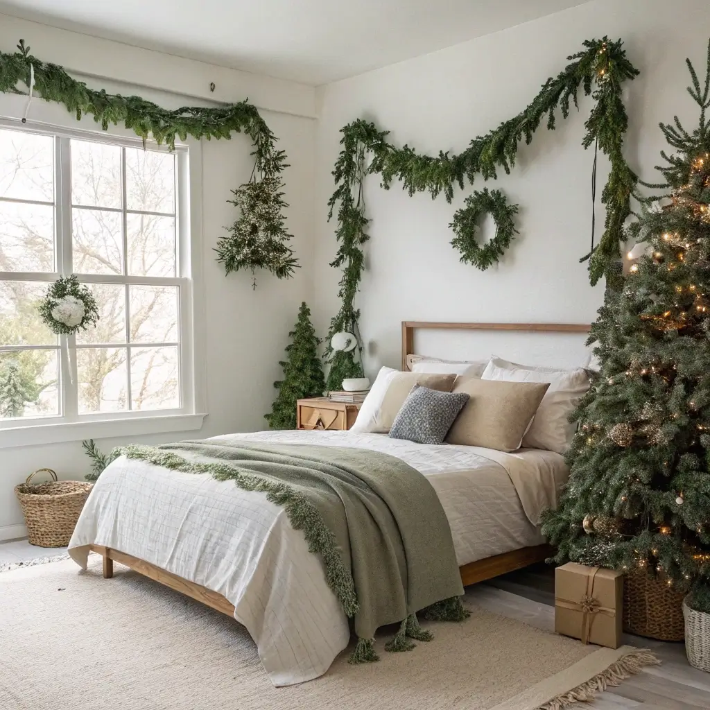 Greenery-Focused Christmas Bedroom